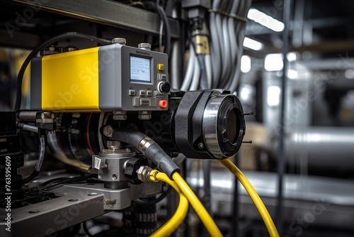 Fototapeta premium High-tech industrial sensor at work in a large-scale factory setting to ensure optimal production