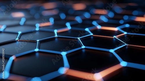 © Антон Сальников, Obraz premium High-tech innovation and communication depicted through abstract futuristic hexagons and circuit boards