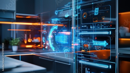 Obraz premium High-Tech Kitchen with Futuristic Interface Design
