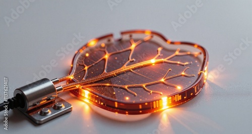 Obraz premium High-tech leaf with embedded circuitry and orange lights