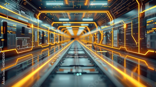 Obraz premium High-tech logistics operations visualized with rich marigold lines. Generative AI.