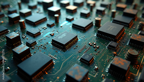 Obraz premium High-Tech Microchip Circuit Board Close-Up