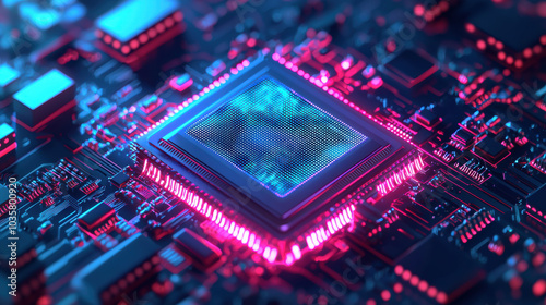 Fototapeta premium High tech microchip with glowing circuits and vibrant colors