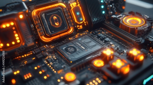 © Lesuna, Fototapeta premium High-tech motherboard close-up