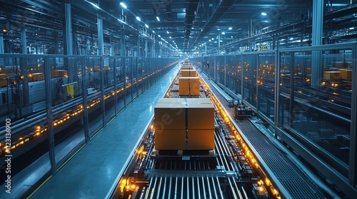 © tunanon, Obraz premium High-Tech Production Line from Overhead Perspective