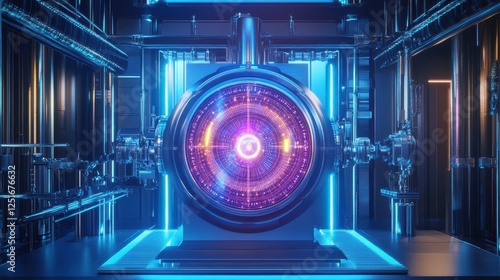 © SepazWorks, Obraz premium High-tech Quantum Machine Glowing with Intricate Holograms