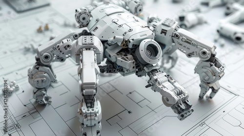 Fototapeta premium High-Tech Robot Armored Creature in Upscale Industrial Setting with Detailed Design and Components