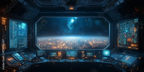 © Matus, Obraz premium High-Tech Sci-Fi Command Center with Deep Space Views, generative ai