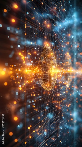 © Urme, Obraz premium High-Tech Science Matrix Displaying Illuminated Nodes in Advanced Network Visualization Photo