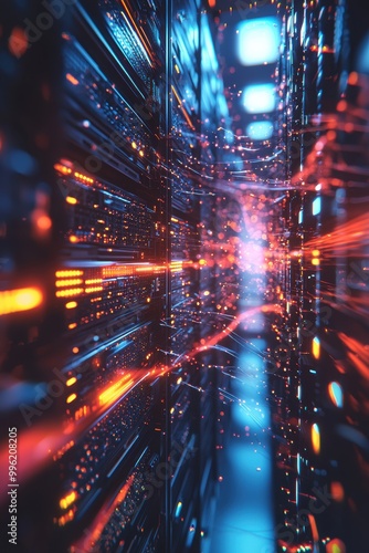 © AssanAI.Studio, Fototapeta premium High Tech Server Rack Close Up View