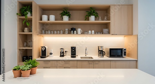 Fototapeta premium High-Tech Startup Office: Sleek Kitchenette & Coffee Bar Ideas for Convenience