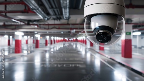© michael, Fototapeta premium High-tech surveillance camera in parking lot