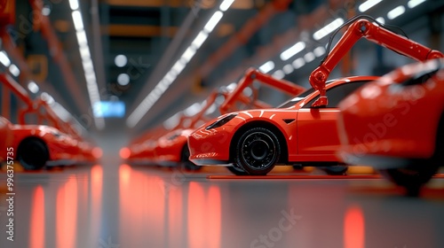 © SakdaSong, Obraz premium High-tech vehicle factory assembly