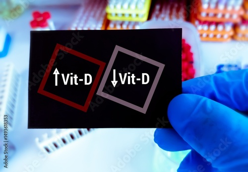 © Saiful52, Naklejka premium High (Toxic) and Low (Deficient) level of vitamin D conceptual image. vitamin D health concept