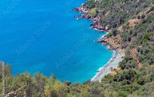 © coco, Fototapeta premium high view on the peloponnese coast with beautiful blue water in Greek