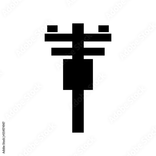Fototapeta premium High voltage power electric pole with transformer transmit electricity on white background shadow silhouette black icon flat vector design.
