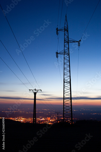 © BHPX, Fototapeta premium High voltage tower at sunset