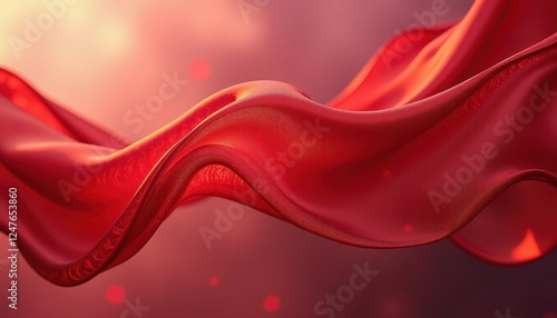 © Mr.Pancho Store, Obraz premium HighDefinition Ima: Vibrant Red Silk Fabric with Smooth Wavy Texture