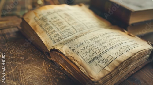 Obraz premium Highdefinition shot of a vintage ledger book showing augmented reality financial data, with ample copy space