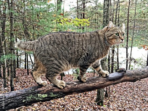 © 2tun, Naklejka premium Highland Lynx cat walking on a log.