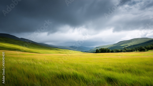 © Akash, Obraz premium Highland plain with storm clouds moving fast