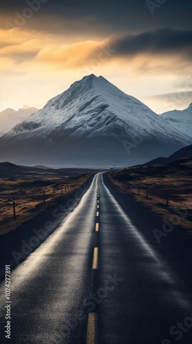 Fototapeta premium Highland road to mountain outdoors horizon highway.
