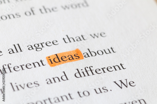 © Thamyris, Obraz premium Highlighted English Word "Ideas" in a Book