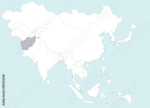 © Sanja, Fototapeta premium Highlighted grey map of AFGHANISTAN inside white detailed blank political map of Asia on blue background, without the Middle East and Russia