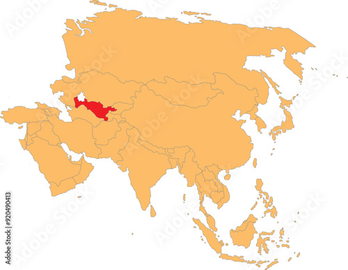 © Sanja, Fototapeta premium Highlighted map of UZBEKISTAN inside detailed blank flat political map of the Asian continent on isolated background