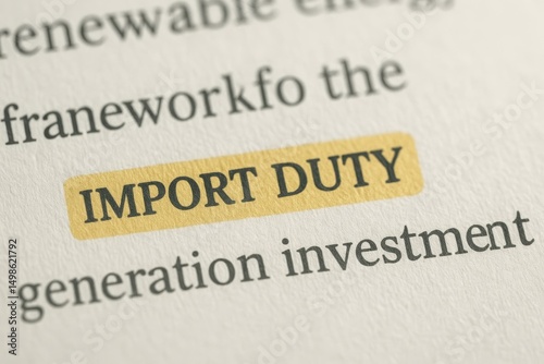 © Nisit, Fototapeta premium Highlighted Text of Import Duty on a Document about Generation Investment and Renewable Energy