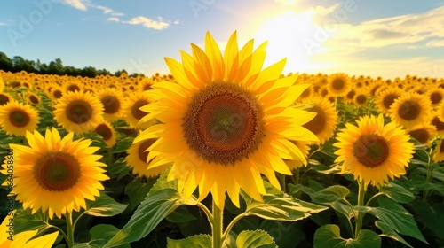 © Leah, Obraz premium Highlighting a Vast Sunflower Field in Full Bloom