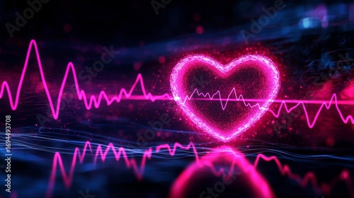 © RaidenShogun, Fototapeta premium Highlighting arrhythmic conditions through broken waveforms over a heart shape.