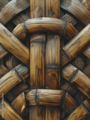 © Kanisorn, Obraz premium Highlighting the intricate symmetry of a meticulously carved bamboo pattern, emphasizing its organic texture and precise minimalist design.