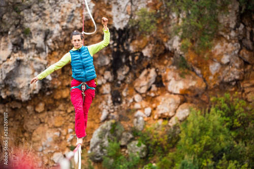 © zhukovvvlad, Fototapeta premium Highline in the mountains.