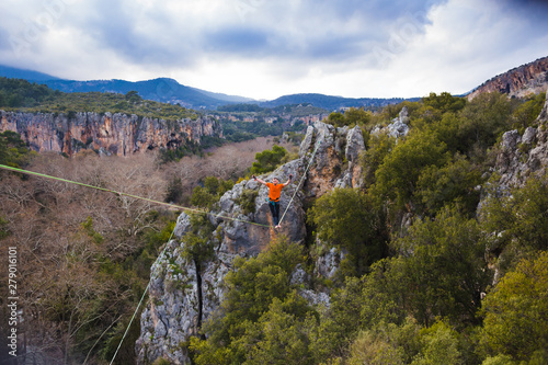 © zhukovvvlad, Fototapeta premium Highline in the mountains.