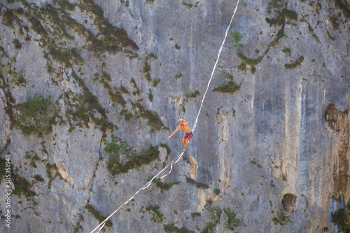 © zhukovvvlad, Naklejka premium Highline in the mountains.