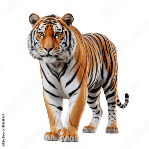 © SpiximCreation, Naklejka premium Highly detailed Bengal tiger standing with intense gaze, realistic fur texture, and natural posture isolated transparent background