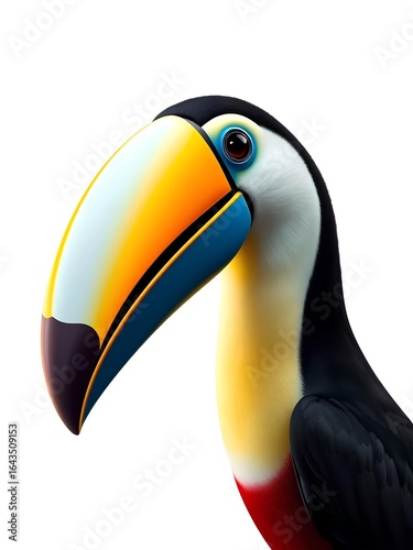 Fototapeta premium Highly detailed digital illustration of a toucan with vibrant colors, showcasing its distinctive beak and striking features against a white background