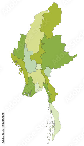Fototapeta premium Highly detailed editable political map with separated layers. Myanmar.