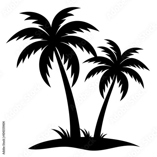 © QuickDesign24, Obraz premium Highly Detailed Two palm tree black silhouette Vector illustration isolated on a transparent background
