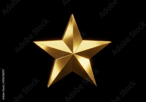 Obraz premium Highly polished five pointed metallic object glows against a solid black background