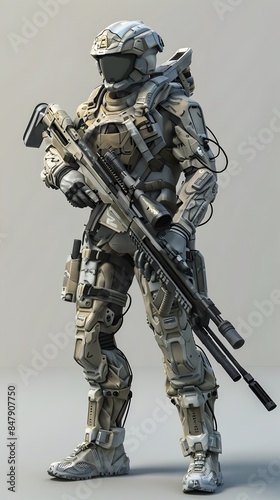 Fototapeta premium Highly Trained Tactical Sniper with High Powered Rifle in Disciplined Posture