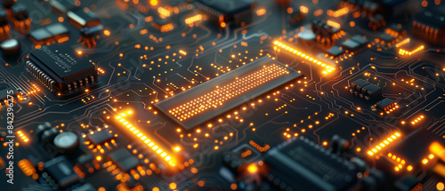 Obraz premium Highresolution circuit board closeup with dynamic glowing components