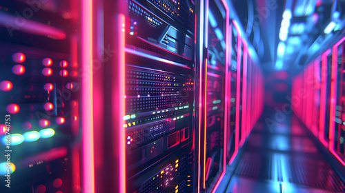 Fototapeta premium Hightech Data Center Featuring Secure Server Racks and Cybersecurity Systems
