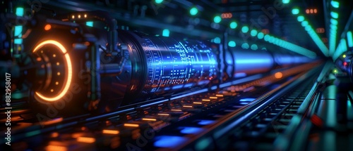 Fototapeta premium Hightech gas transport, sleek modern design, power generation, neon blue and...