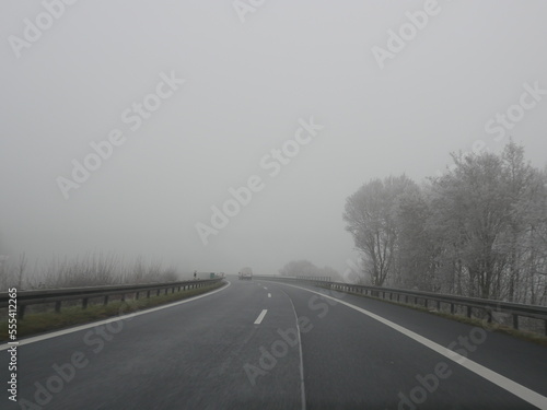 © flucas, Fototapeta premium Highway in fog German Autobahn