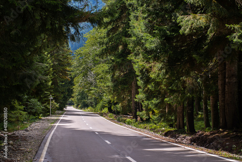 © David Khelashvili, Fototapeta premium Highway in the spruce forest