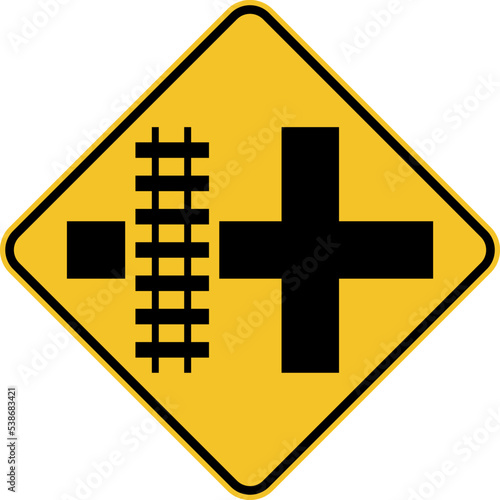 Fototapeta premium Highway Light Rail Transit Grade Crossing Left Sign