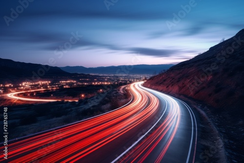 Naklejka premium highway outside the city in the evening with blurry tracks from headlights