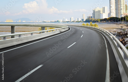 Fototapeta premium Highway overpass motion blur with city background .